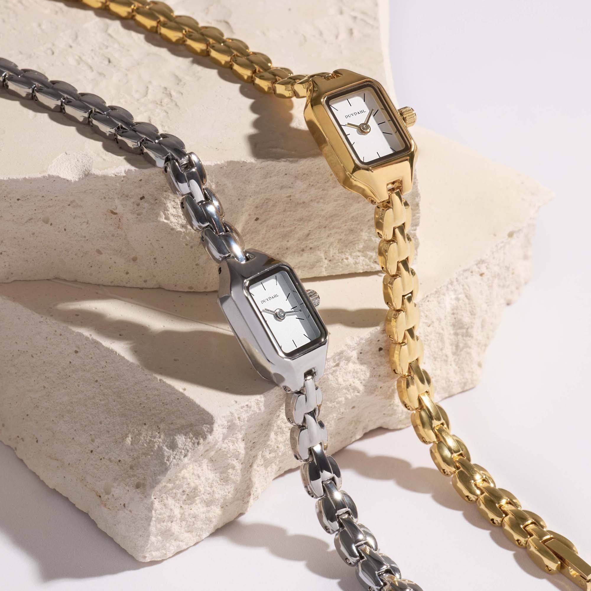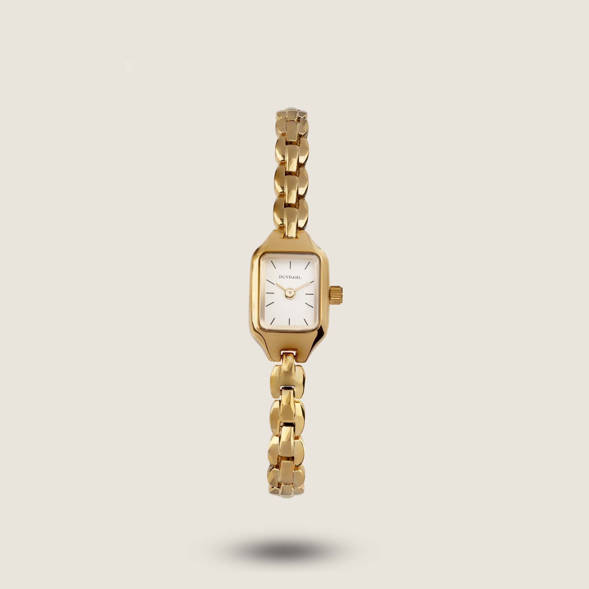 The Duvdahl watch features a sleek, minimalist design with a contemporary bracelet strap and a timeless dial. It’s crafted to elevate both everyday looks and elegant occasions. Designed in Sweden, it pairs effortlessly with jewelry or stands out beautifully on its own.